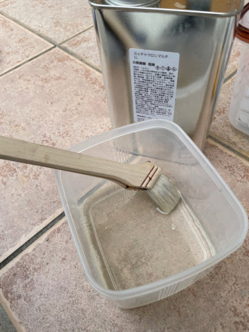 ちなみに、ミッチャクロンは油性なので、刷毛は「うすめ液」で洗う必要があります。水性塗料は、乾燥しきってしまうまでは水で洗うことができます。乾燥してしまうと、耐水性になるので、水でぬれても色が落ちません。