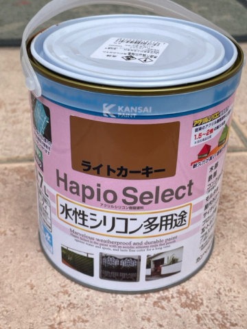 今回使用したのは、「水性シリコン多用途塗料 ライトカーキ」です。