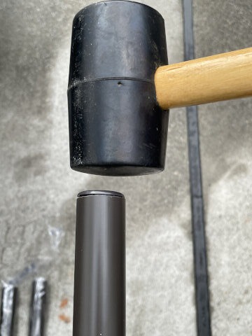 ゴムハンマーでガシガシ叩き込みます。キャップはきつくはまるので、接着液は不要です。