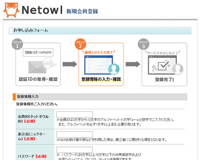 会員登録フォームが表示されますので、解説に従って入力してください。