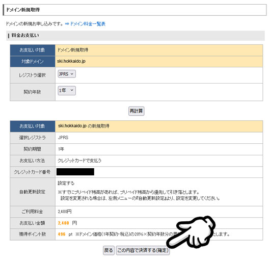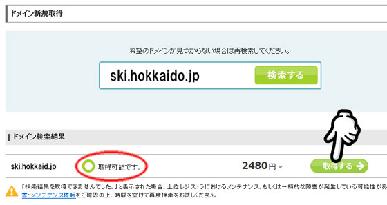 なお、解説の中では、 例として ski.hokkaido.jp を取得するようにしています。