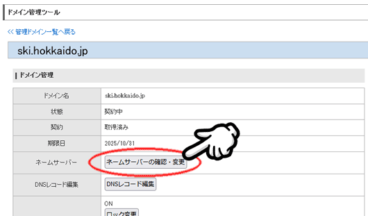 ここにドメイン名( ski.hokkaido.jp )を入力します。