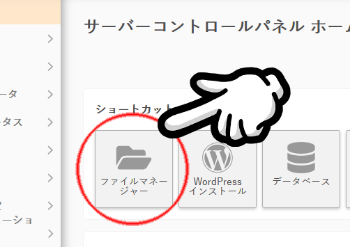 ログイン直後の画面に「ファイルマネージャー」があるので、クリックします。
