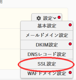 右端の「設定」ボタンをクリックし、「SSL設定」を選択してください。