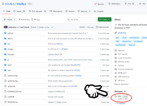 続いて、YOURLSをダウンロードします。