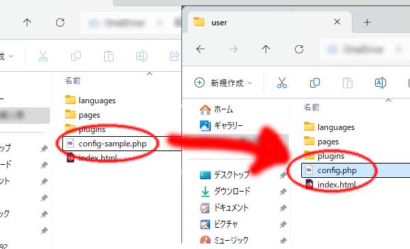 ⑤user/config-sample.php を config.php にリネームします。