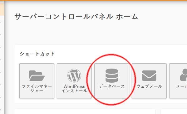 ②開いたら、画面中ほどの「ショートカット」の中から、「データベース」をクリックします。