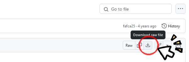 ③ソースコード右上にある、ダウンロードボタンをクリックしてください。すると、ダウンロードが始まります。