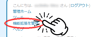 ①まず、管理ホームの左上にある「機能拡張を管理」というリンクをクリックします。