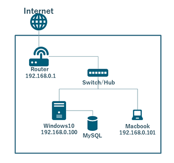 Windows10のPC(IP: 192.168.0.100)にMySQLサーバをインストールしています。