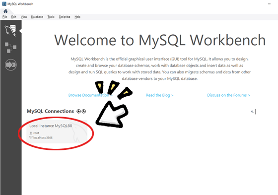 開いたら、「Local instance MySQL80」というのがあるはずです。