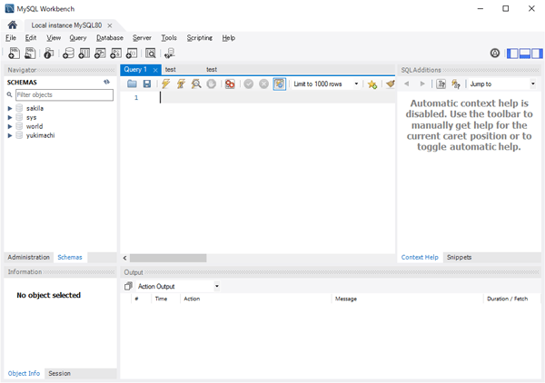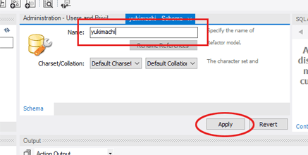 とりあえず、サンプルとして「yukimachi」というスキーマを作成します。