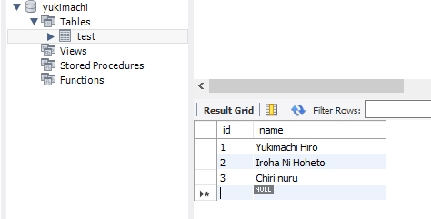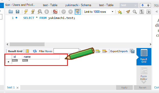 表示されたテーブルビューの下の Result Grid に入力していきます。