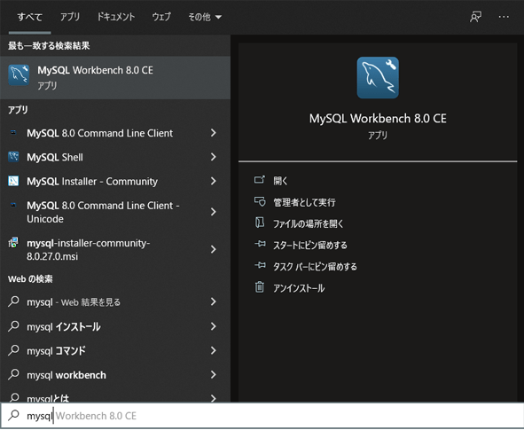 検索から「mysql」と入力すると、だいたいの環境では上記のような表示になると思います。